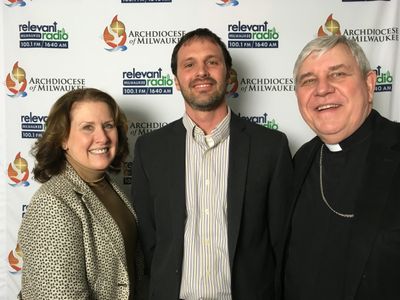 Joe Meyer executive director of Laudato Si' Project with Archbishop Listecki and Lydia LoCoco